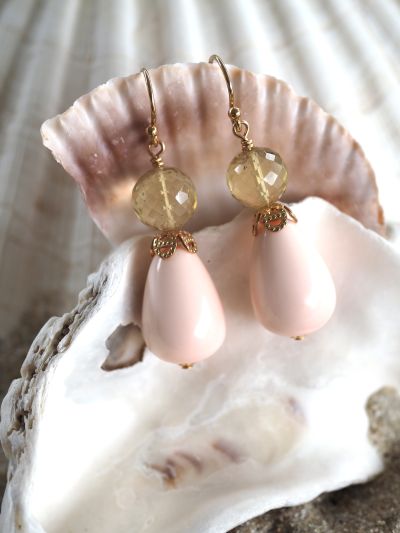 • Goldfilled oorbellen met limoenkwarts en agaat
