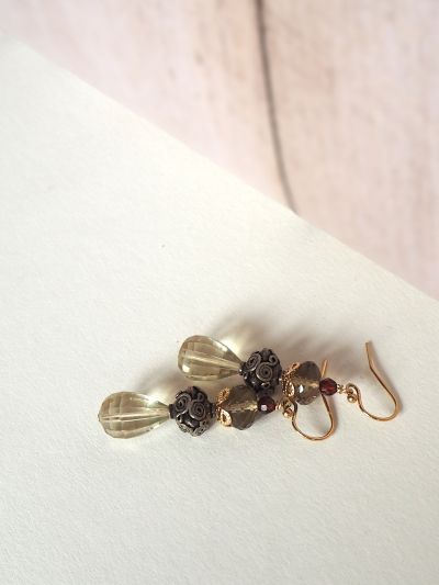 • Goldfilled oorbellen met zilver, granaat en lemonkwarts