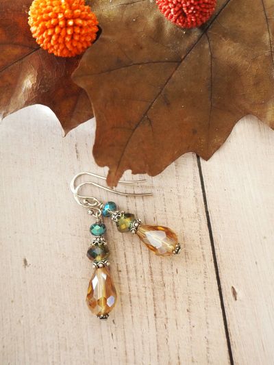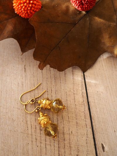• Goldfilled hangers met citrien, kattenoog en kristal