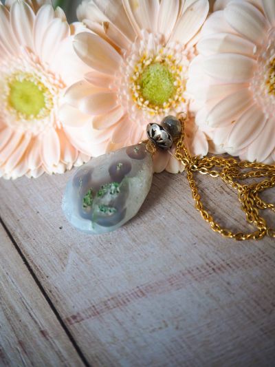 • Brass ketting met goldfilled hanger met labradoriet en mosagaat