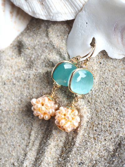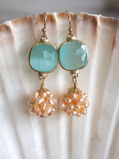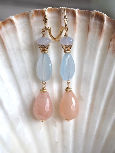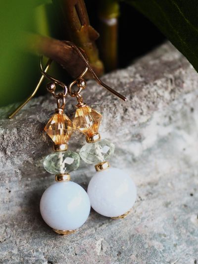 • Goldfilled oorbellen met opaliet, agaat en aventurijn