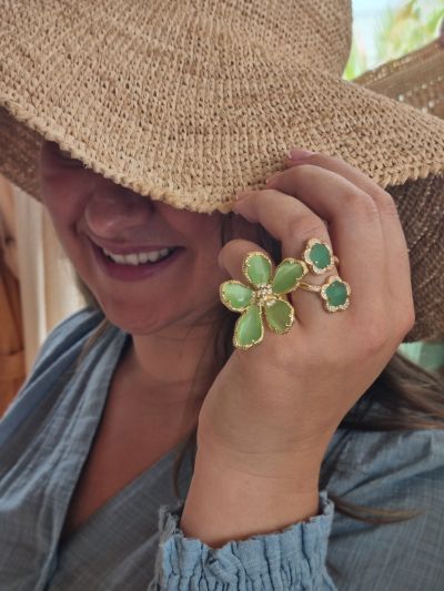 • Brass ring met meerdere kleuren stenen (maat 57)