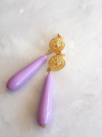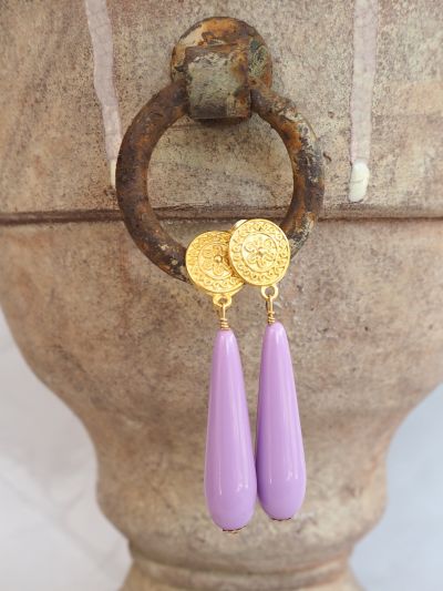 • Brass stekers met goldfilled elementen, kattenoog, lemonkwarts, amethist, aquamarijn en prehniet