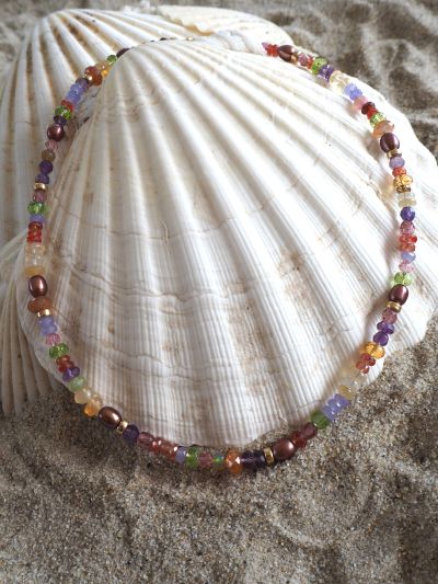 • Jewels by Marthje ketting met peridot, opaal, parel, oranje saffier, zonnesteen, agaat en kristal