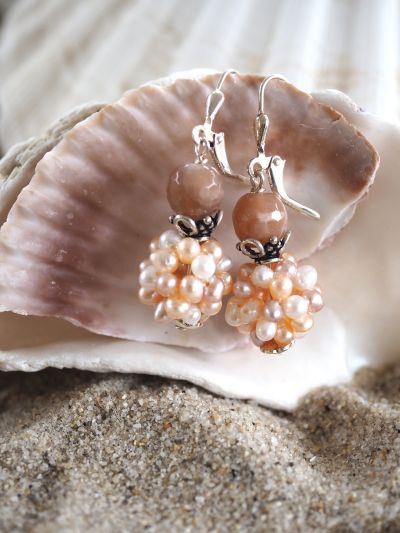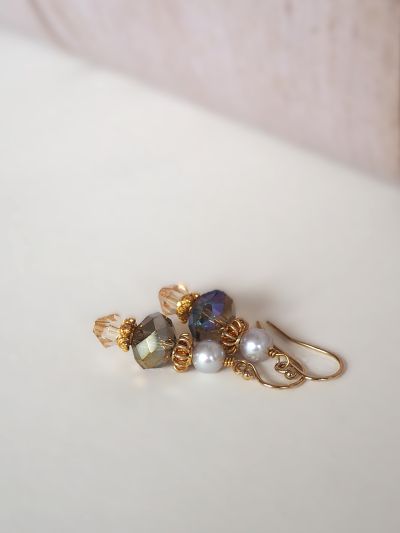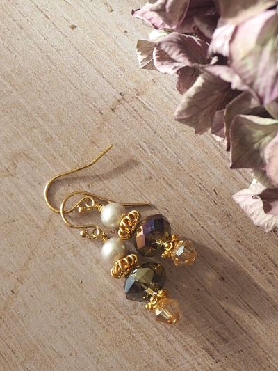 • Goldfilled oorbellen met markasiet, maansteen, parel, kwarts