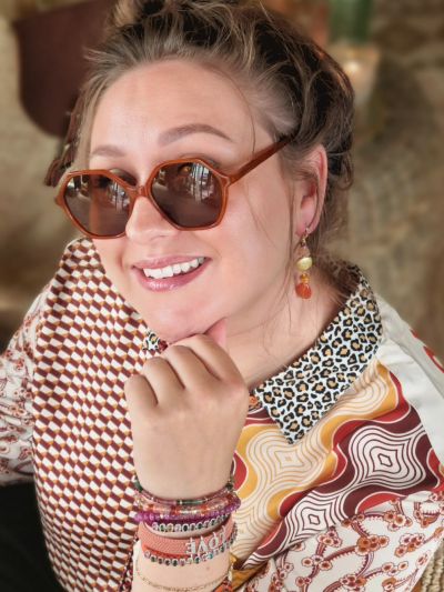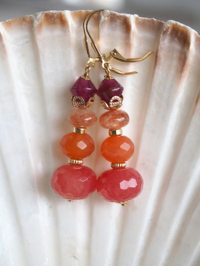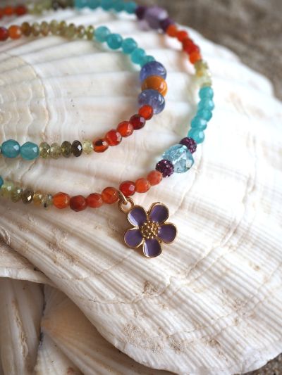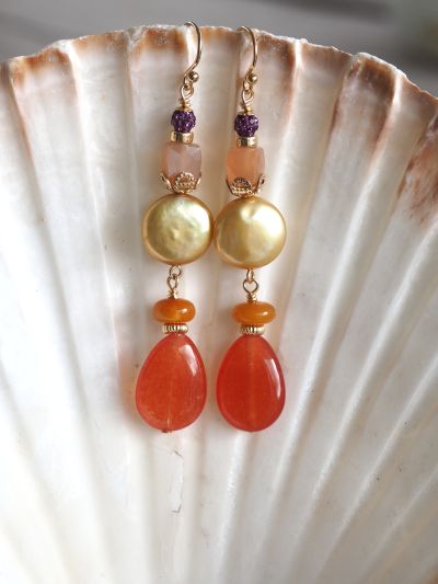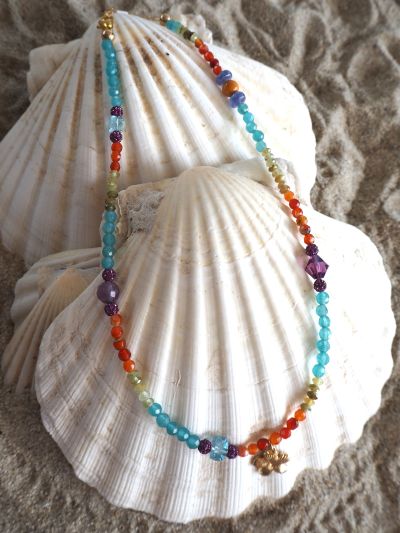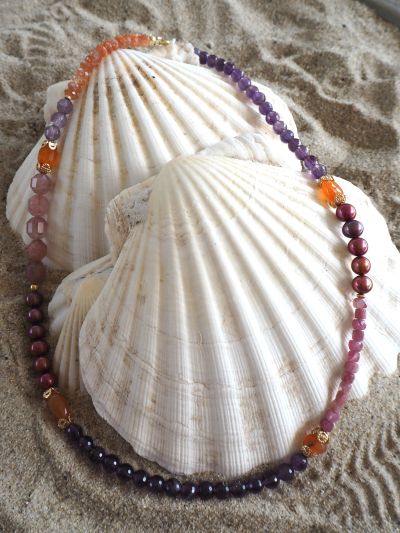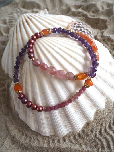 Armband van goldfilled materiaal met o.a. parel, hematiet, prasioliet, carneool en granaat