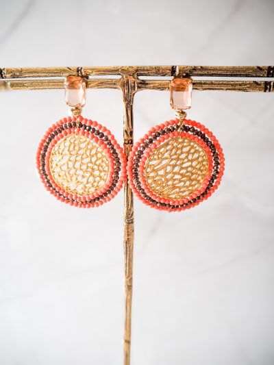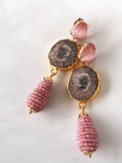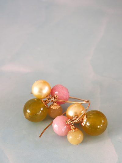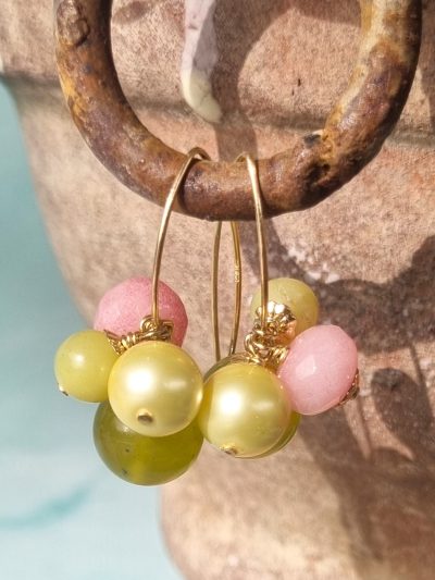 • Goldfilled oorbellen met rodochrosiet, zonnesteen, carneool en agaat