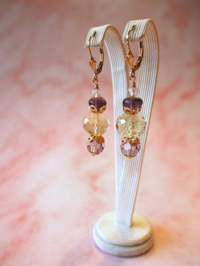 • Goldfilled hangers met aardbeienkwarts, kristal en lemonkwarts