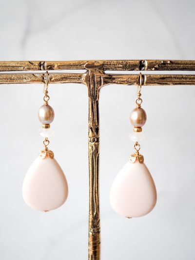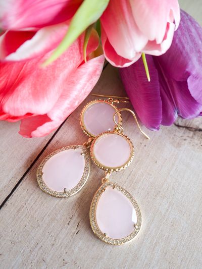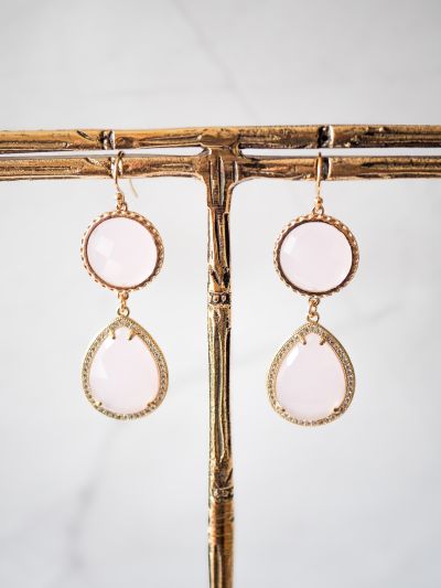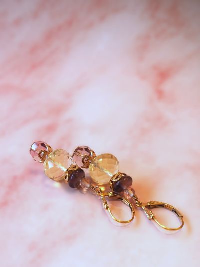 • Brass stekers met kwarts en goldfilled oorbellen met roze toermalijn