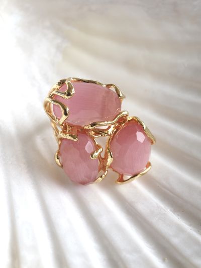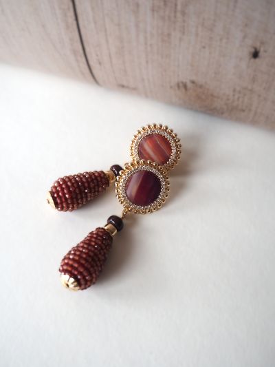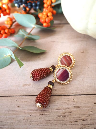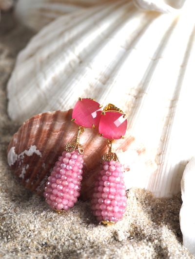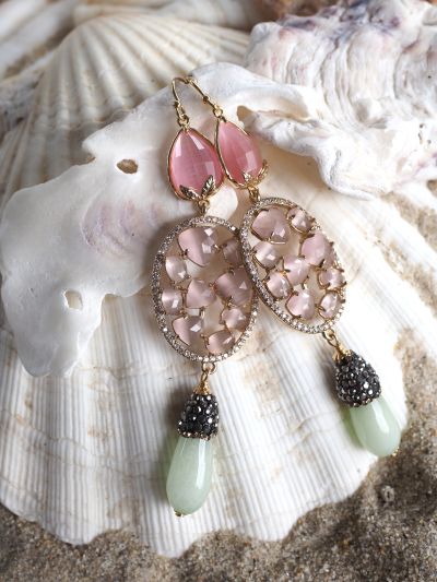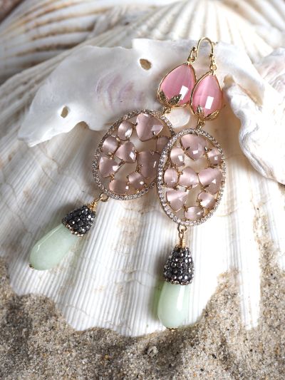 • Brass stekers met kattenoog, agaat en roze toermalijn