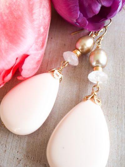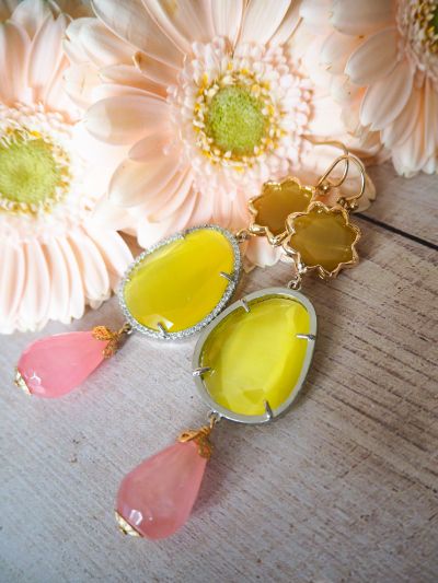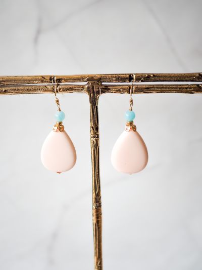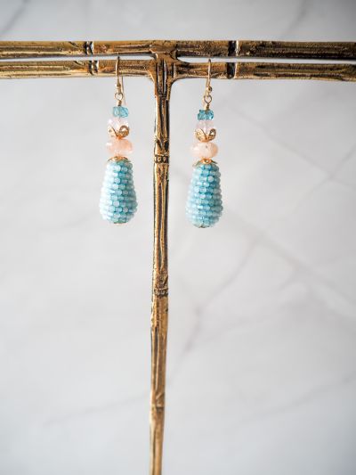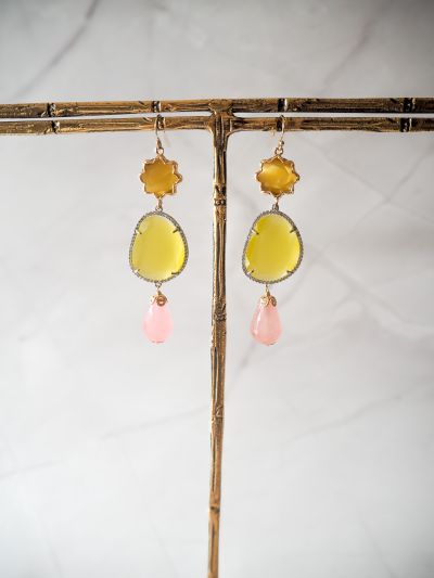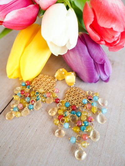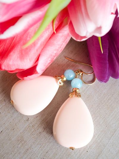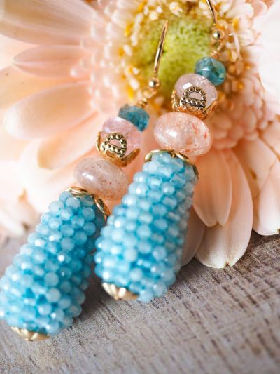 • Goldfilled oorbellen met topaas, morganiet, zonnesteen en aquamarijn