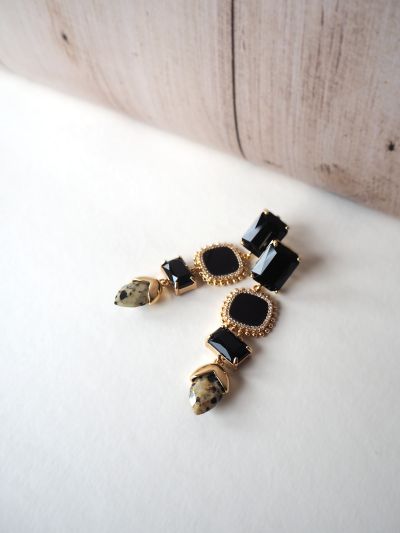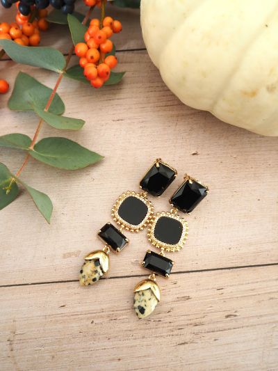 • Goldfilled oorbellen met limoenkwarts, pyriet, zilver en onyx