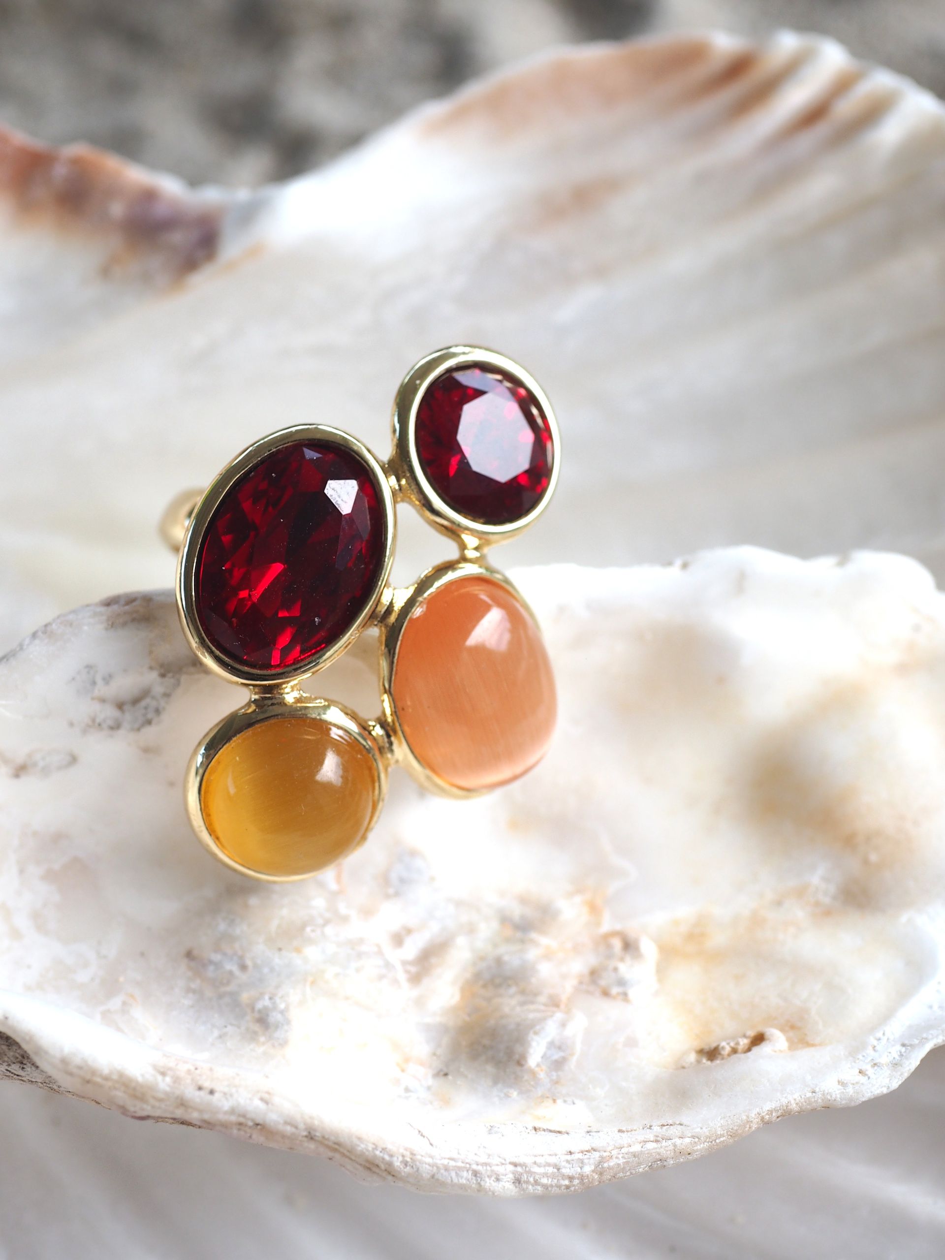 Brass ring met meerdere kleuren stenen, flexibele maat
