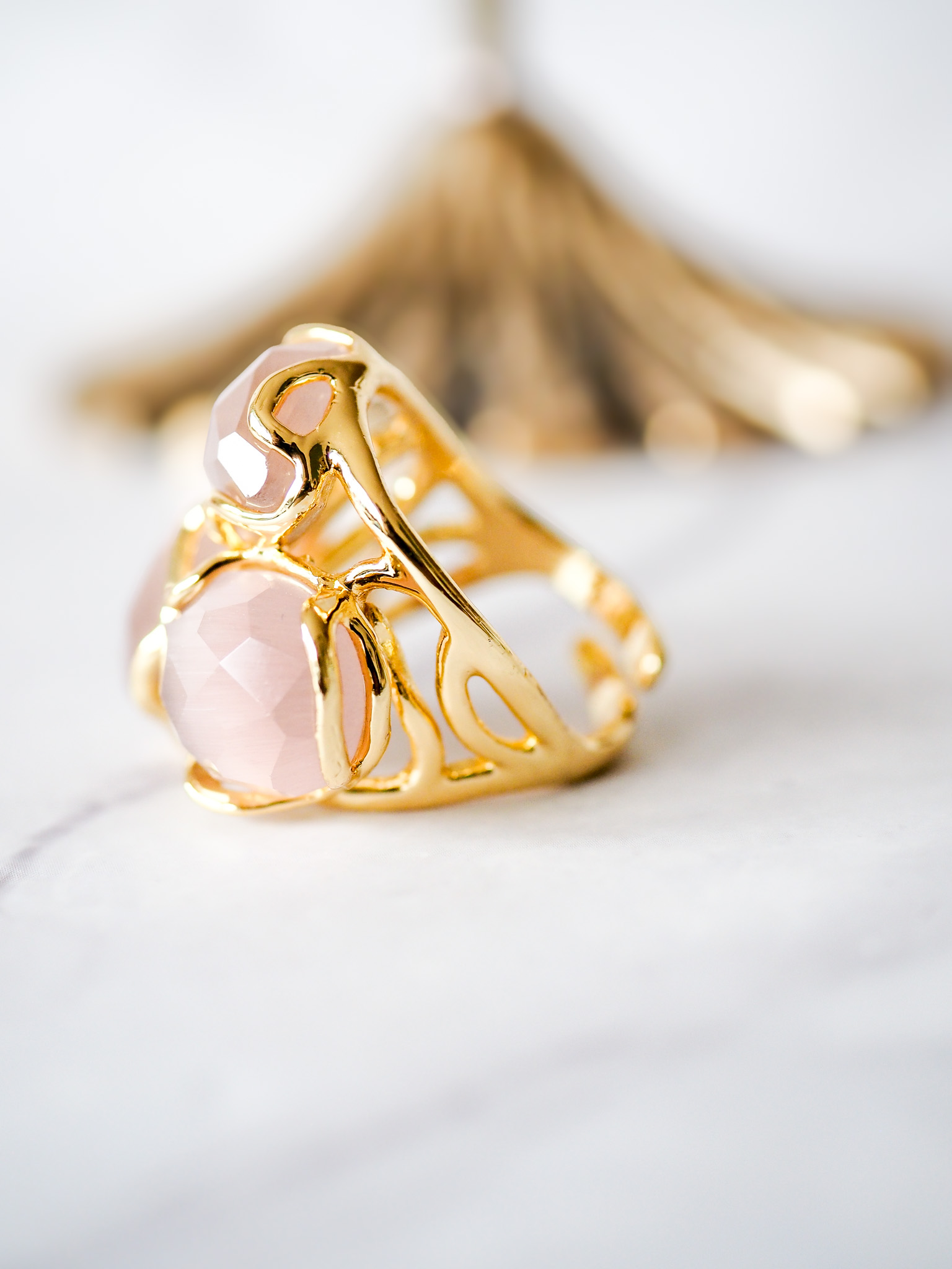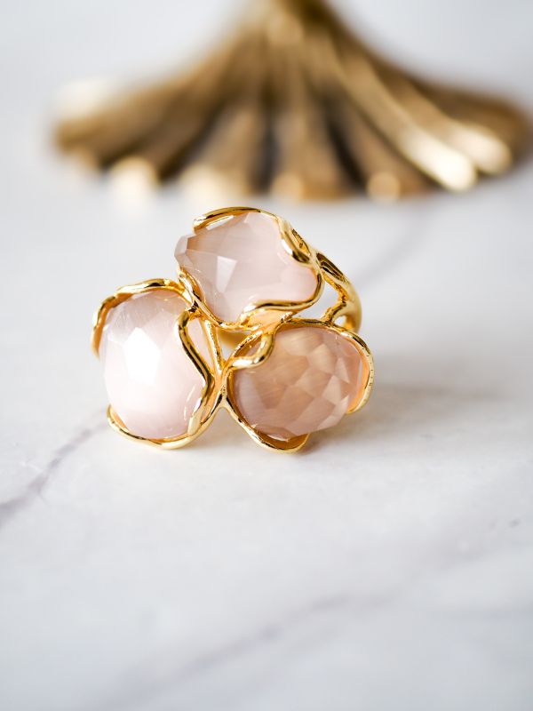 Brass ring met nude rozige steentjes, flexibele maat