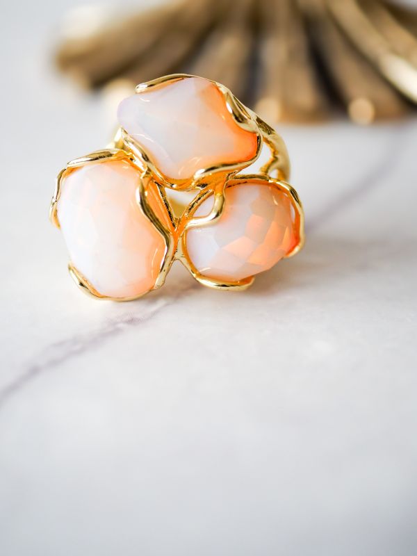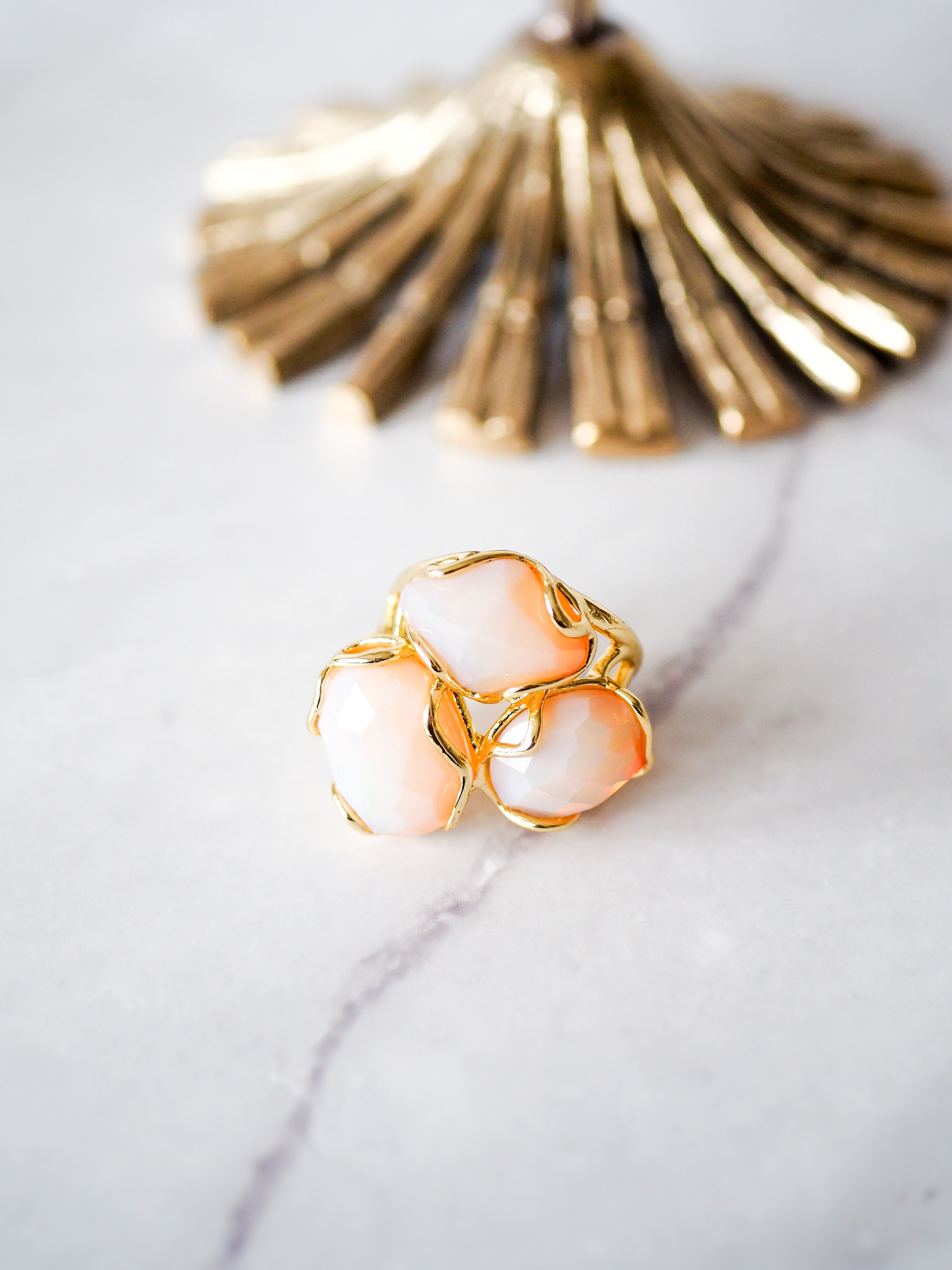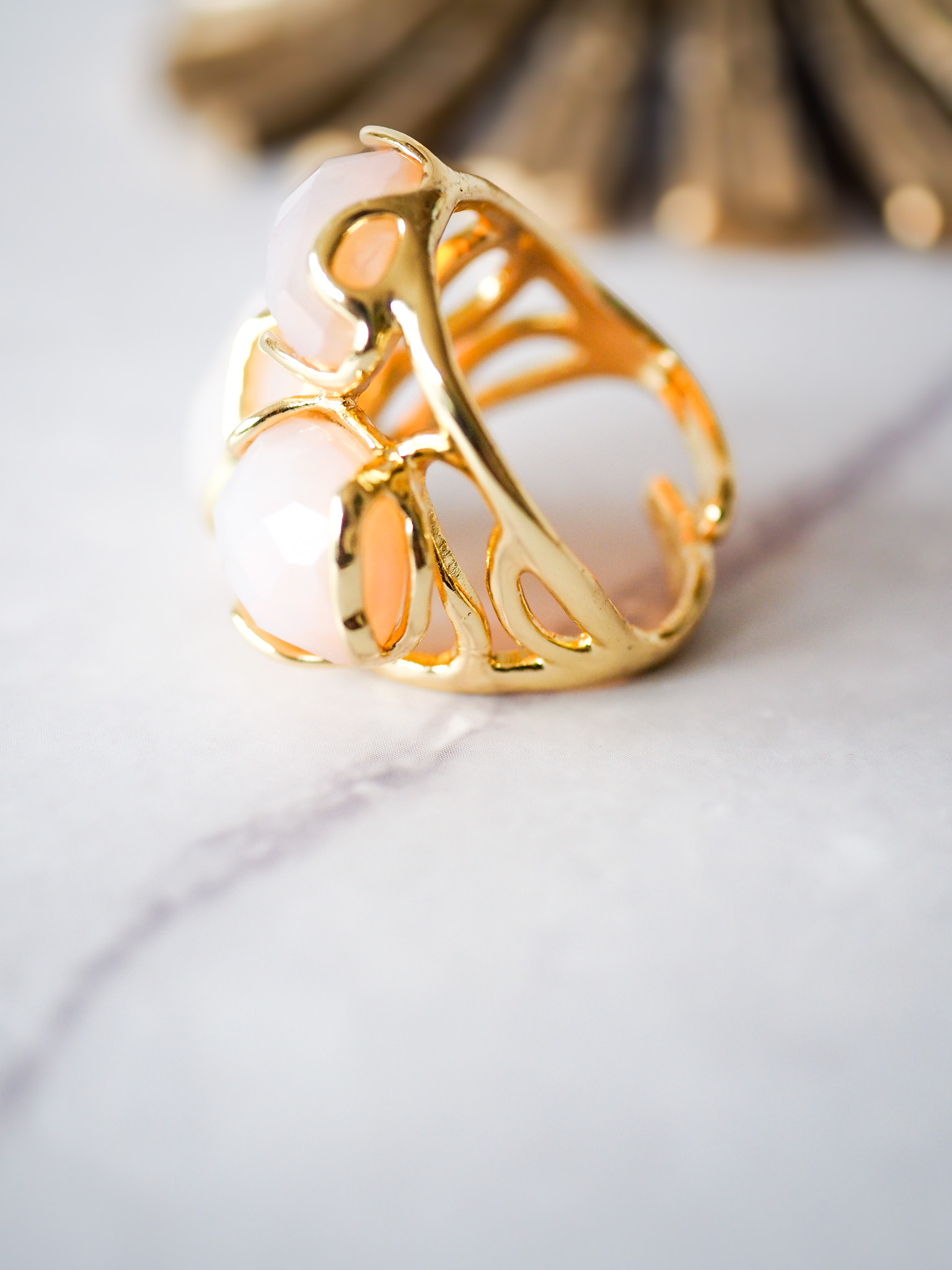 Brass ring met nudekleurige steentjes, flexibele maat