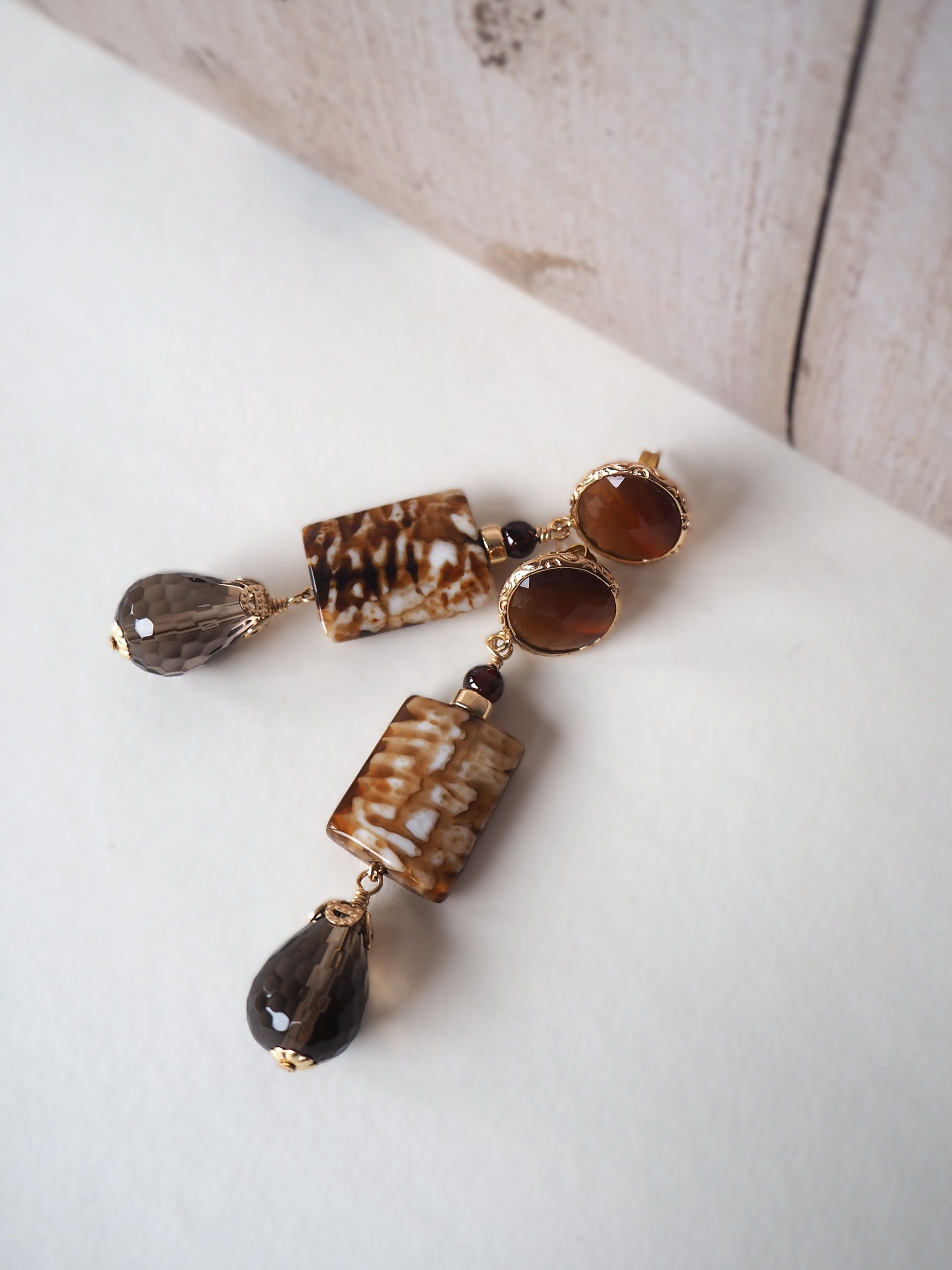 Brass stekers met granaat, tijgeragaat en rookkwarts