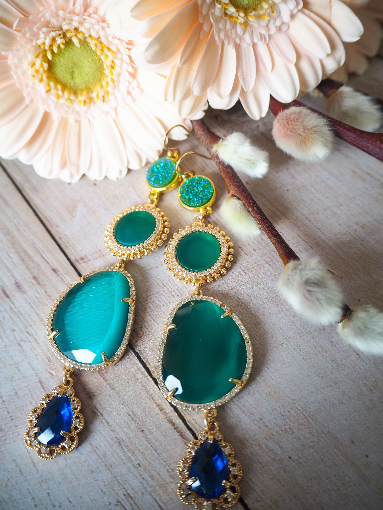 Goldfilled haakjes met druzy, agaat, kristal en kattenoog