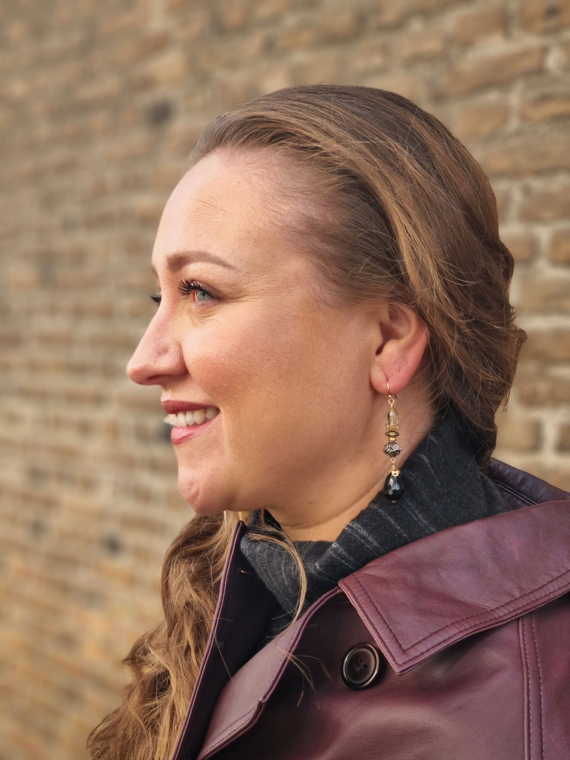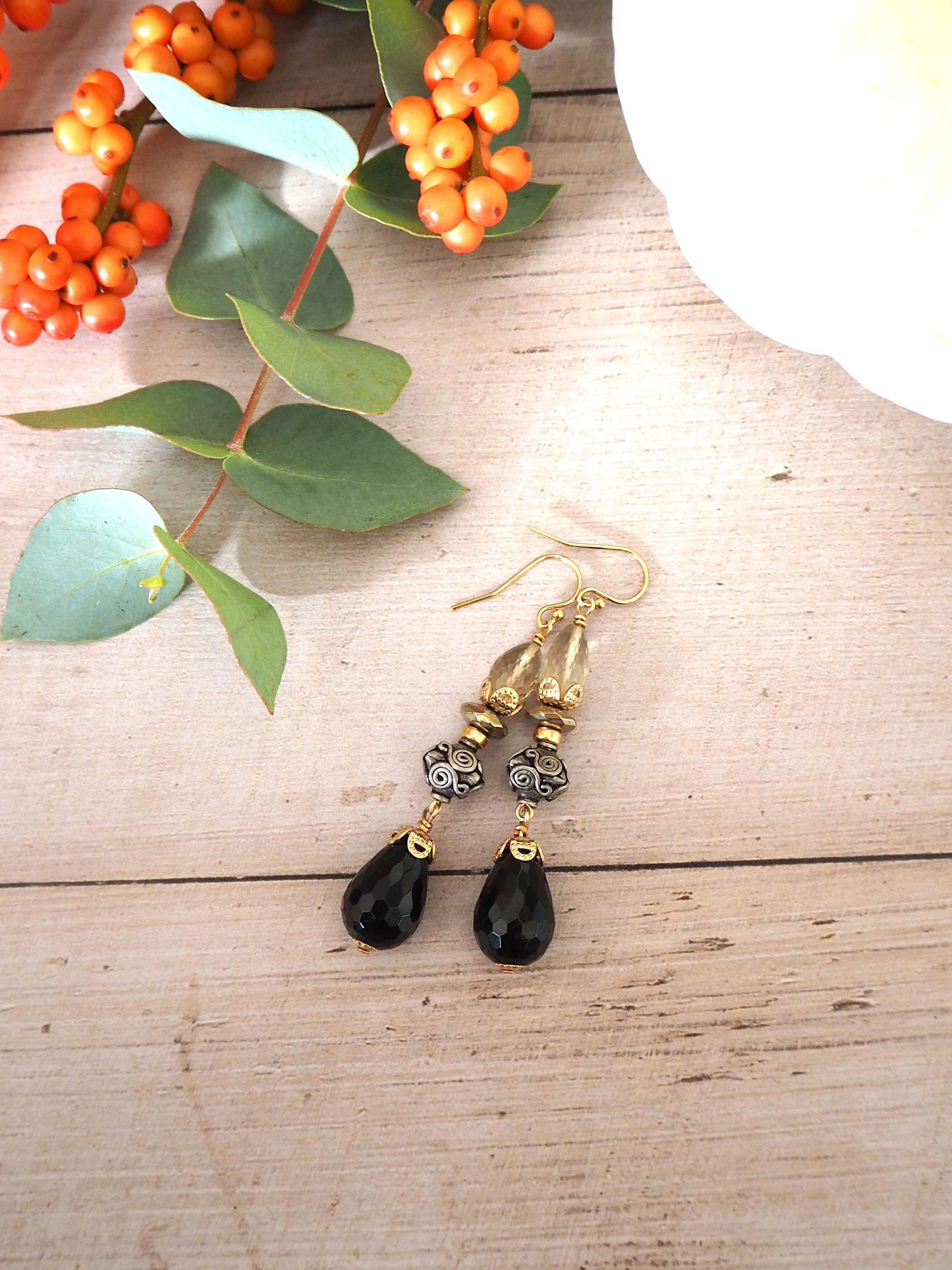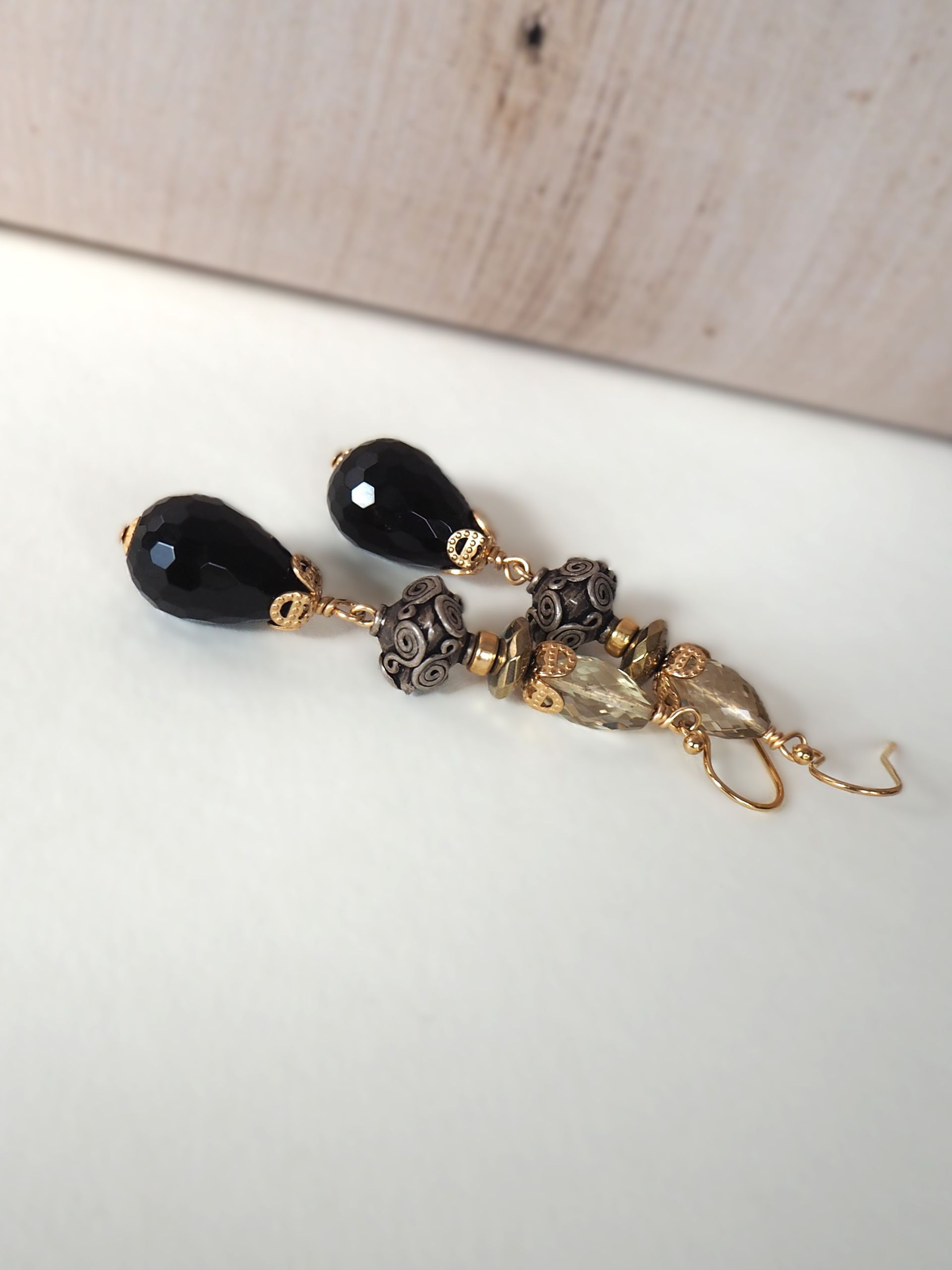 Goldfilled oorbellen met limoenkwarts, pyriet, zilver en onyx