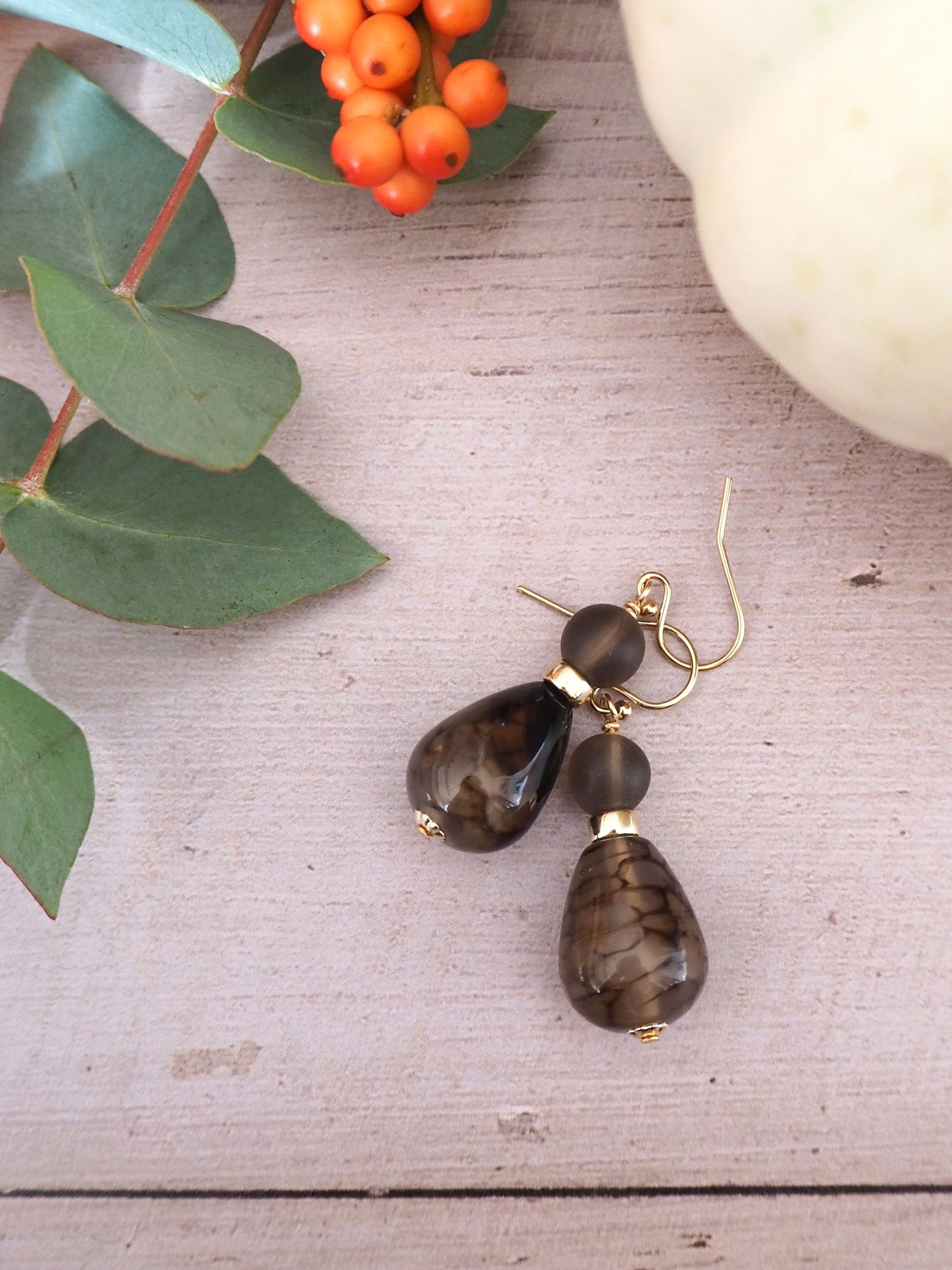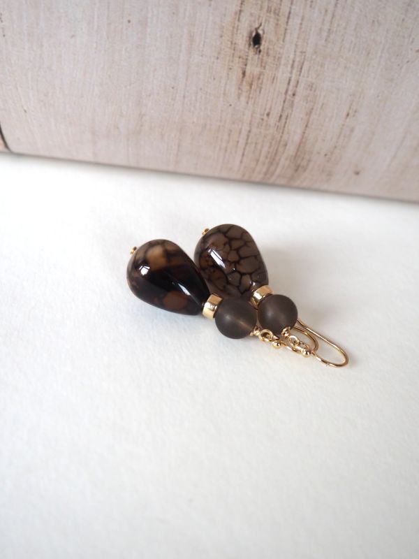 Goldfilled oorbellen met rookkwarts en tijgeragaat