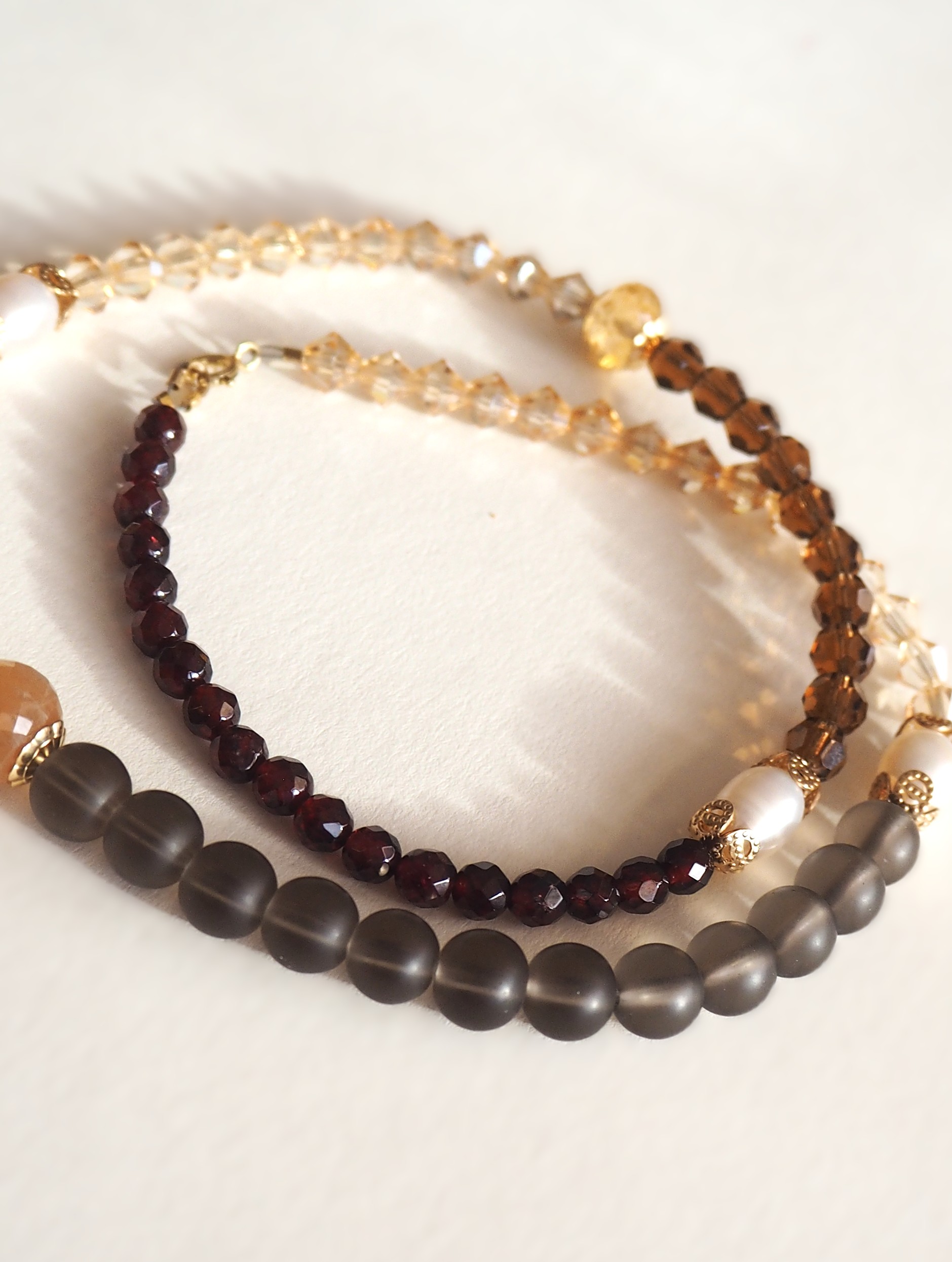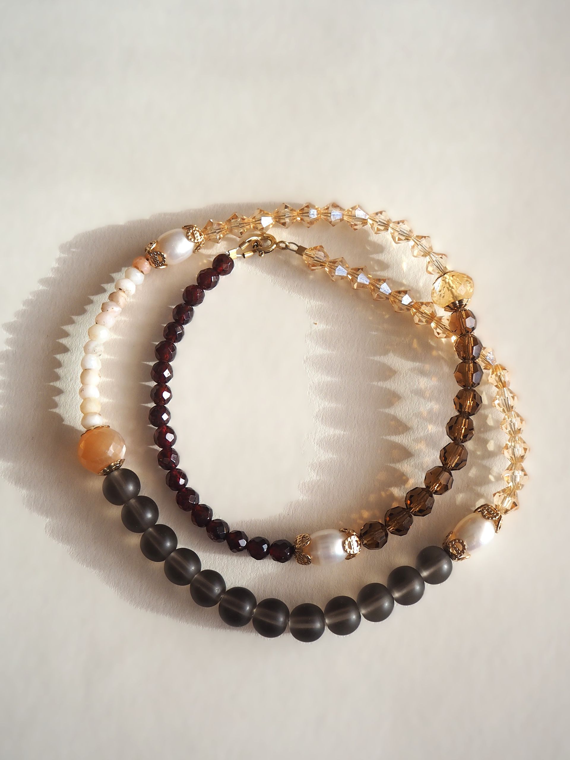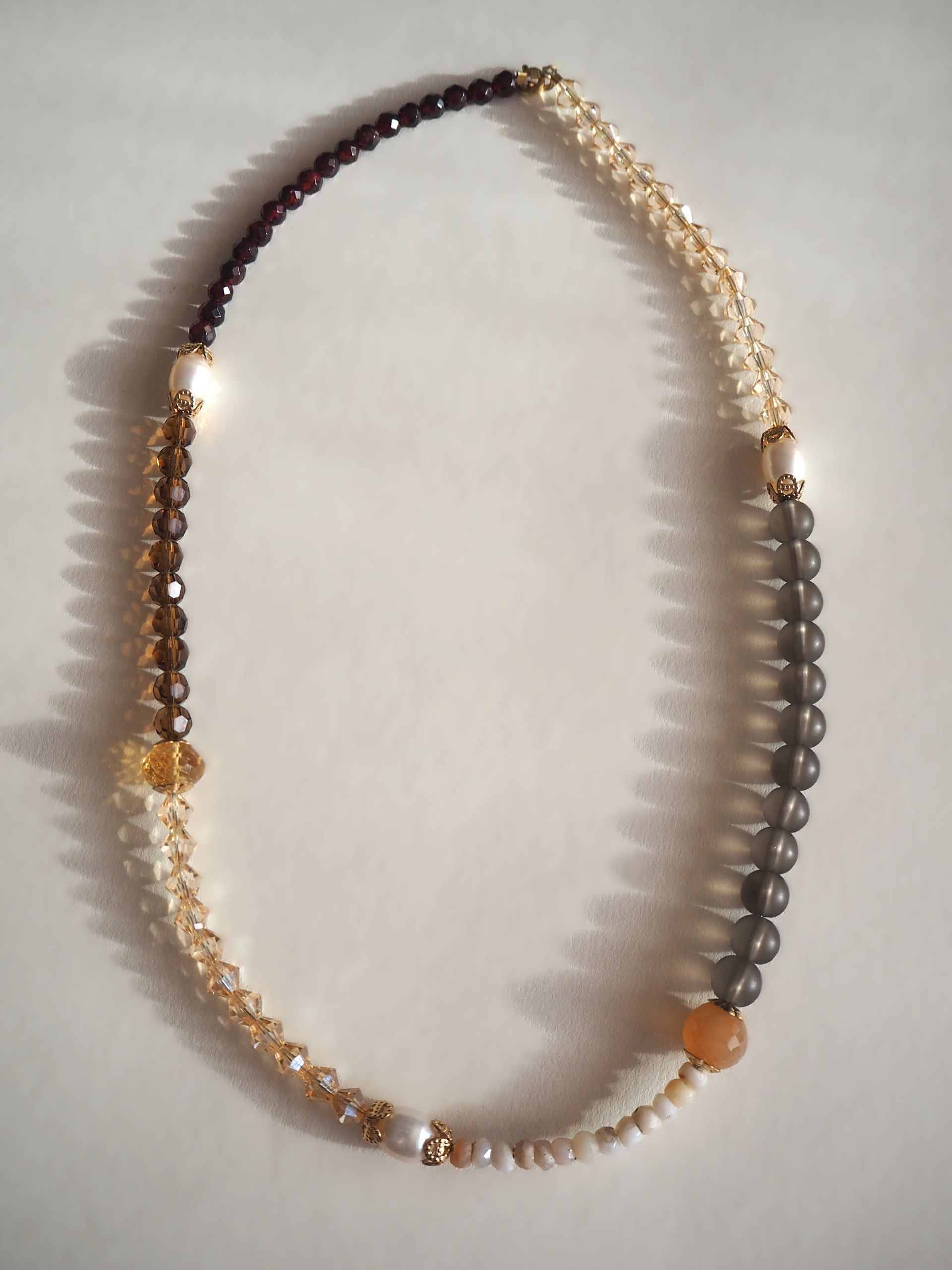 Jewels by Marthje ketting met granaat, rookkwarts opaal en kristal