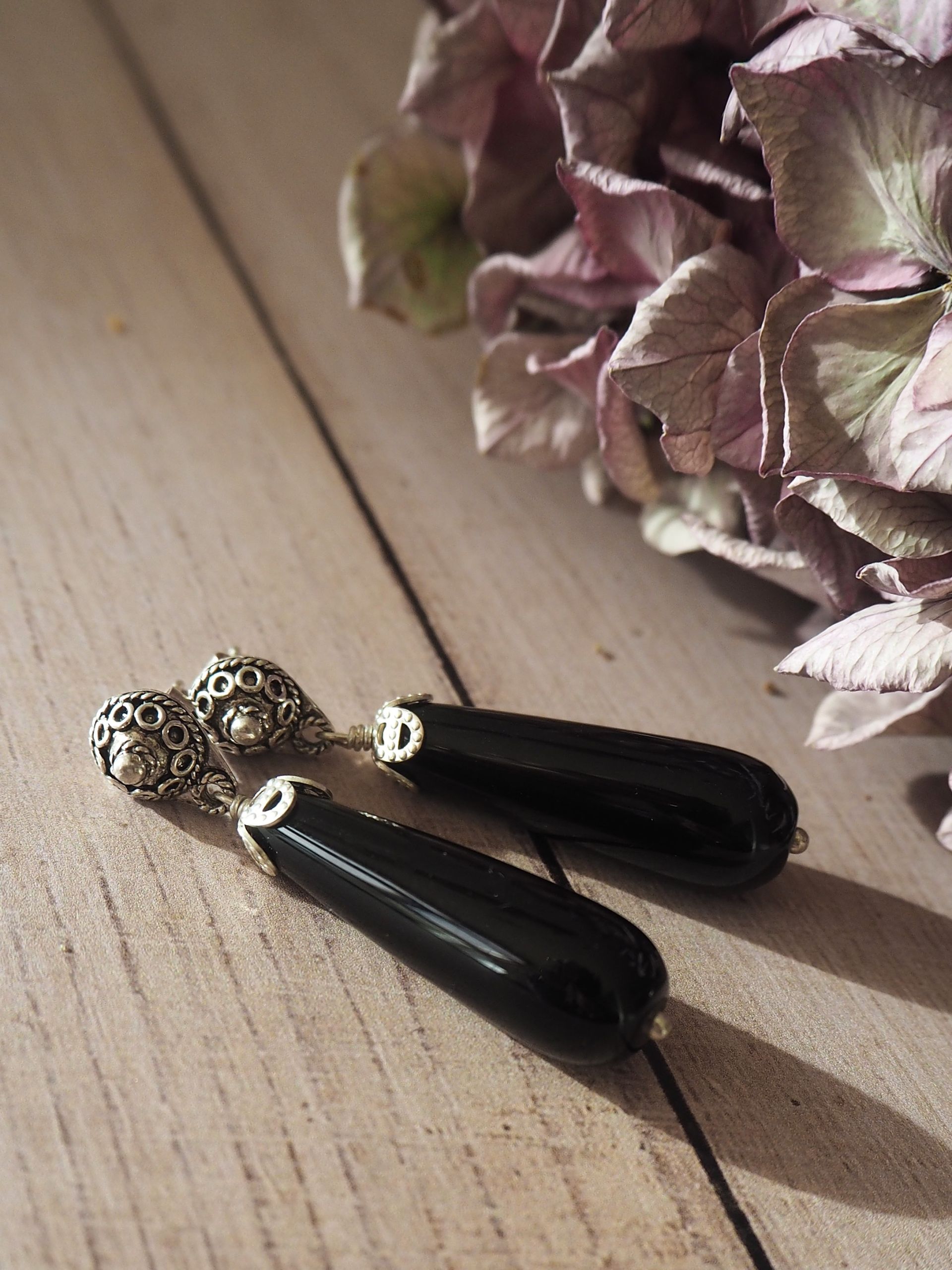 Zilveren oorbellen met onyx