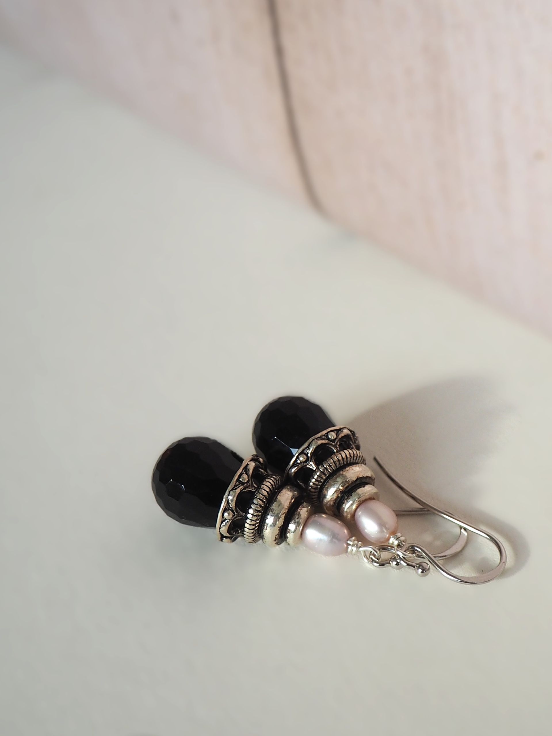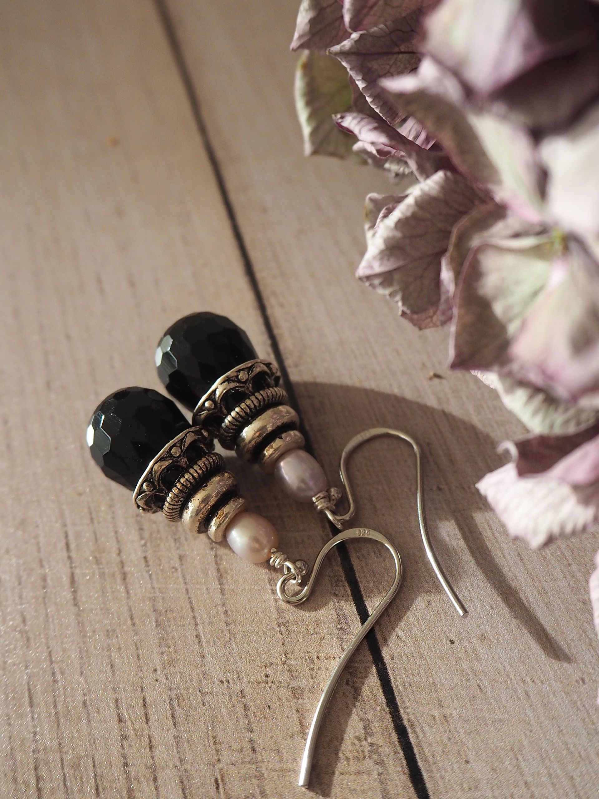Zilveren oorbellen met parel en onyx